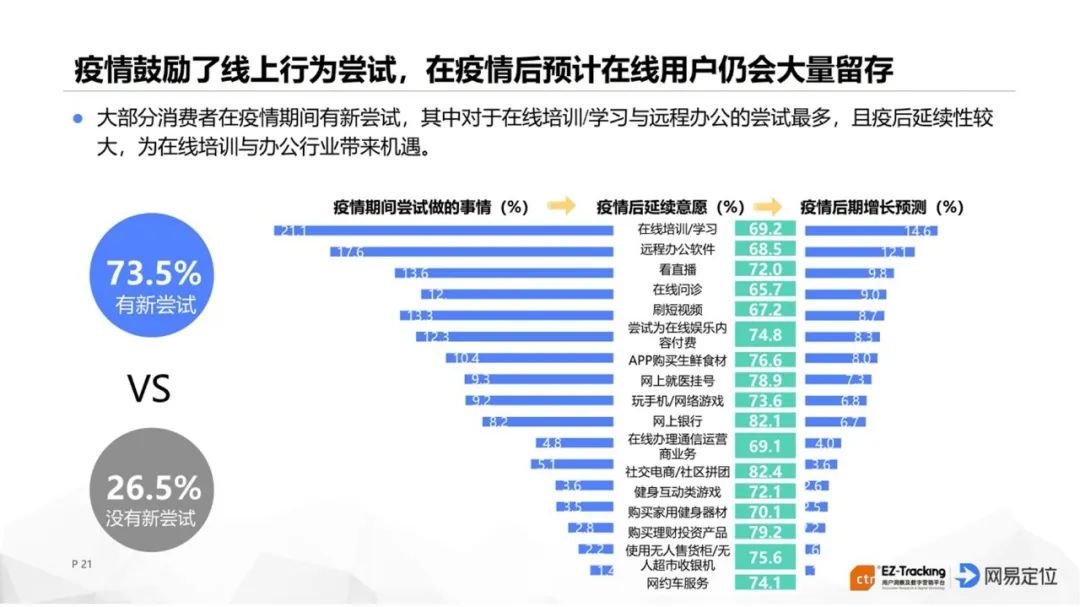 有報(bào)告顯示,大部分消費(fèi)者在疫情期間都有新嘗試,其中對(duì)于看直播的嘗試位居TOP3,且疫后延續(xù)性較大,直播作為當(dāng)下最為火爆的網(wǎng)絡(luò)營(yíng)銷(xiāo)手段,其未來(lái)機(jī)會(huì)巨大。就母嬰用戶(hù)來(lái)說(shuō),他們很愿意...