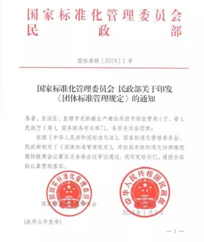 國標委〔2019〕1號 各省、自治區、直轄市及新疆生產建設兵團市場監管局(廳、委),民政廳(局),國務院各有關部門,各有關社會團體: 依據《中華人民共和國標準化法》,國家標準化...