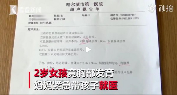 隨著人們生活水平的提高,性早熟問題越來越廣泛了。最近,黑龍江省哈爾濱一名2周歲的女童竟然胸部發(fā)育,于是孩子的媽媽趕緊帶孩子去醫(yī)院就醫(yī)。經(jīng)過檢查發(fā)現(xiàn),這名女童的胸部發(fā)育接近十歲孩子水...