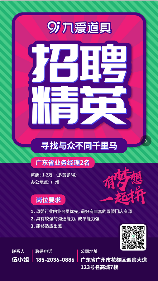 廣州九愛母嬰道具招聘廣東省業(yè)務(wù)經(jīng)理