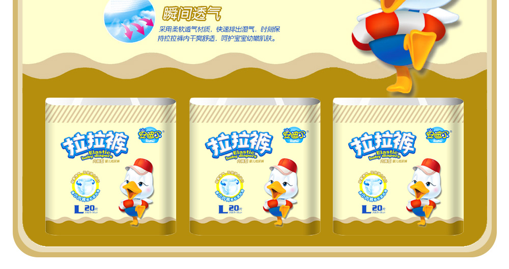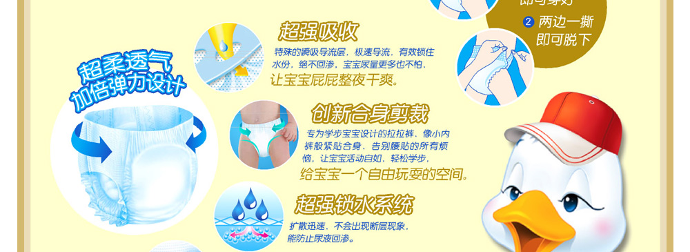 ·復合透氣外層:底膜能及時散發悶熱濕氣,讓寶寶屁屁更干爽、舒適自然。