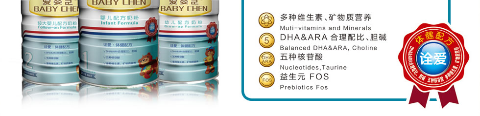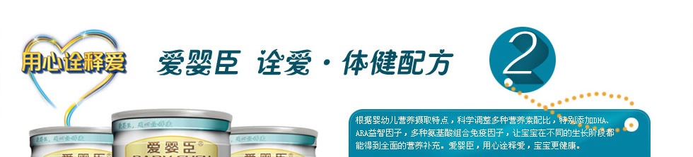 /食品法典委員會(CAC)所制定的推薦標準和中國配方奶粉食品安全國家標準,根據中國寶寶生長發育特征和需求,在原有品牌基礎之上,隆重推出具有中國寶寶專屬品質的愛嬰臣嬰幼兒配方奶粉“至愛?精護配方”和“詮愛?體健配方”兩大系列產品,并將為中國父母提供更專業的科學喂哺和育嬰服務。