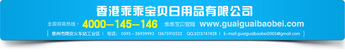 現(xiàn)公司旗下“乖乖寶貝”及“多貝爽”品牌火熱招商中,愿與您攜手共同發(fā)展,共創(chuàng)輝煌,把高品質(zhì)的產(chǎn)品帶給億萬寶寶,讓他健康、舒適的茁壯成長,為全社會億萬嬰幼兒的健康而努力奮斗。
