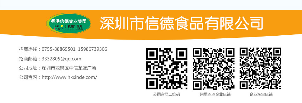 | 深圳市信德食品有限公司是香港信德實業集團有限公司在大陸設立的全資子公司,負責八月十五品牌、小棕熊、南極小企鵝品牌系列食品在中國大陸地區的生產、銷售業務。