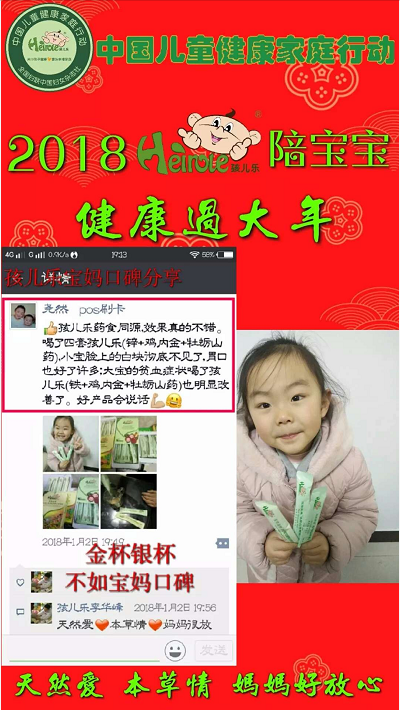 除了日常生活習慣,飲食方面的注意外,預防也很關鍵。孩兒樂可以有效緩解或解決寶寶消化不良、腹瀉、吸收功能不好等問題,還能增強寶寶免疫力,維持腸道平衡。在寶貝的成長過程中,孩兒樂的作用十分明顯,是爸爸媽媽們不折不扣的育兒好幫手。 2018孩兒樂陪寶寶健康度春季活動順利開展,來一睹代言人的風采吧!