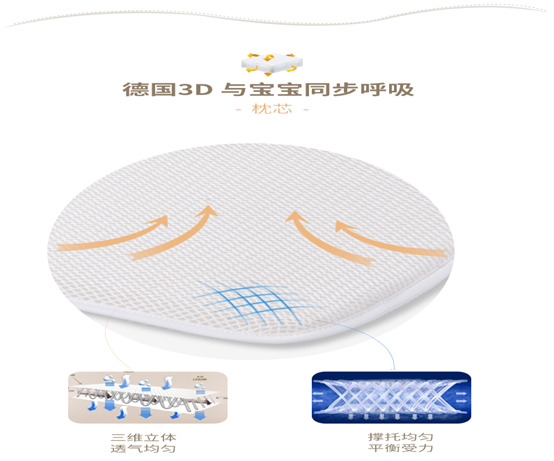 澳貝兒3D嬰童枕選用一顆可以清洗的芯,枕芯選用來自德國工藝的3D立體高分子睡眠材料,全面開啟枕頭水洗新時代,枕芯可全身水洗,徹底去除螨蟲,防止螨蟲滋生,真正做到360度零死角,并且枕頭透氣性好,也稱為全水洗,會呼吸的枕頭。對于濕疹、過敏、頭部多汗的寶寶,澳貝兒3D嬰童枕是首選。 |