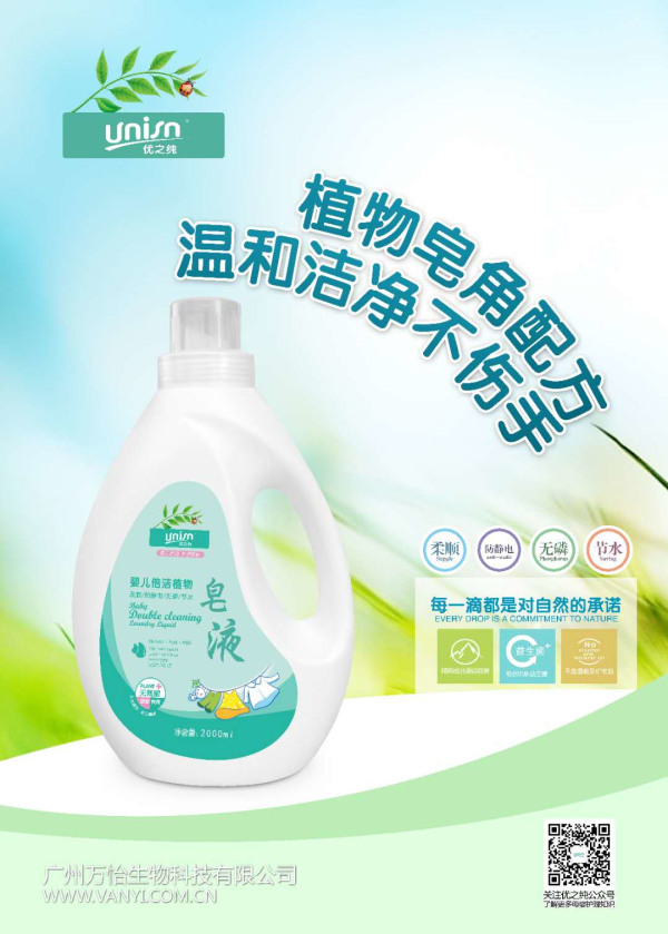 優(yōu)之純嬰兒倍潔植物皂液 PH值接近中性,溫和清潔。快速清除奶漬、果漬等多種附著有害物質(zhì),泡沫細(xì)膩溫和,易沖洗。不添加熒光增白劑、漂白劑、磷等有害物質(zhì),洗后無殘留,安全無毒,可生物分解。