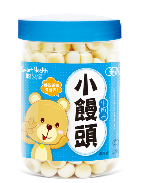 聰又健小饅頭選用優質馬鈴薯淀粉、奶粉等原料,營養搭配均衡合理,是美味可口的營養小點心。聰又健小饅頭外表小巧可愛,容易吸引寶寶的注意。