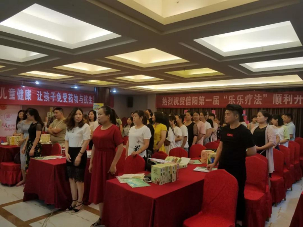 2018年6月29日,河南信陽第一屆“樂樂療法”順利開班。湖南知達醫藥華南戰區事業部資深總監李華峰先生、知達商學院南區培訓總監彭元杰老師、孩兒樂&妍亭舒信陽運營團隊參與了此次盛會,見證了這一輝煌的時刻! 場地布置
