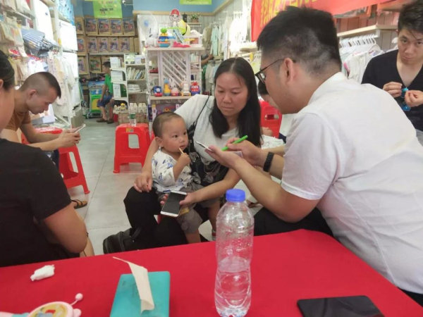 2018年7月15號至16號,湖南知達醫藥商學院金牌講師宋歌老師、運營王志維先生來到武漢江夏好孩子母嬰連鎖,向當地的寶媽們傳授嬰童中醫藥膳食療養護知識,為寶寶為母嬰連鎖提供中醫嬰童健康養護保健咨詢、體質辨識、專業實用小兒推拿手法知識分享。為孩子少生病、不生病,貢獻自己的一份力量!