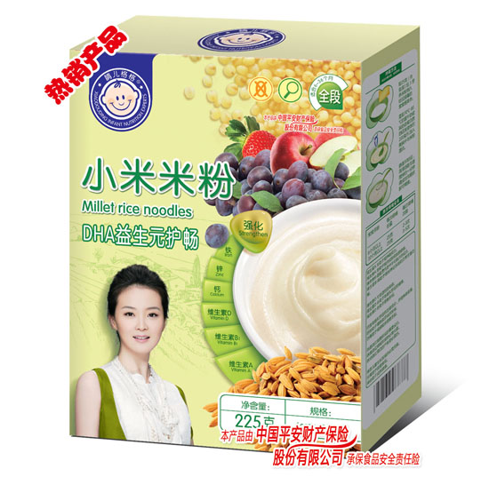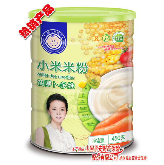 晴兒格格小米米粉營養優化、原料優化、配方優化。米粉分段明確,滿足多個輔食添加階段寶寶營養需求,更有中國平安財產保險股份有限公司承保“食品安全責任險”,知名影星為它代言,是80%的中國媽媽,2000余家母嬰店的共同之選。 |