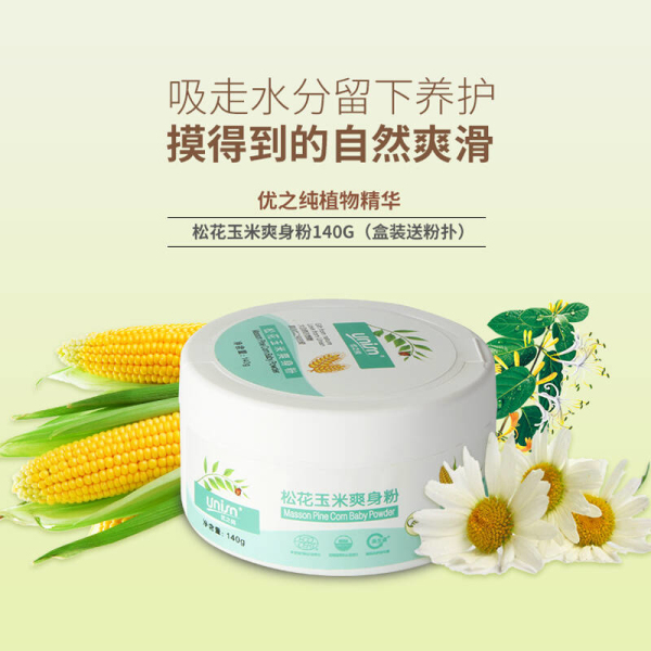 含歐盟/美國有機認證成分 增強寶寶肌膚益生菌群,強化寶寶肌膚抵抗力,減少皮膚疾病發生; 優質植物改性玉米粉,不含滑石粉,天然健康; 萃取改性玉米淀粉、淀粉辛烯基琥琥珀酸鋁、珍珠粉、野菊花與馬尾松精華等多種植物萃取; 有效減少皮膚與外界環境的摩擦,避免受損;吸收多余水汽,保持干爽;野菊花與馬尾松的優化組合,舒緩不適感。粉質細膩易附著,使寶寶皮膚舒爽透氣。