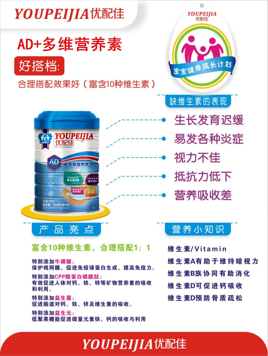 寶寶維生素缺乏需重視,及時補充更為關鍵!優配佳AD+多維營養素,專注寶寶所需維生素補充,易消化好吸收,寶寶更健康,媽媽更放心!