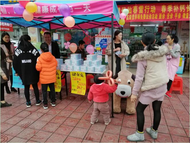 三月,健優仙“春雷行動,春季補鈣長高”現場可見,除乳鈣凝膠糖果外,就屬健優仙滴劑比較受歡迎了,當日三盒五盒小走貨,滿滿一包大走量很是普遍。店員們要頻繁往展柜、門前堆頭處補貨,才能保證需求。