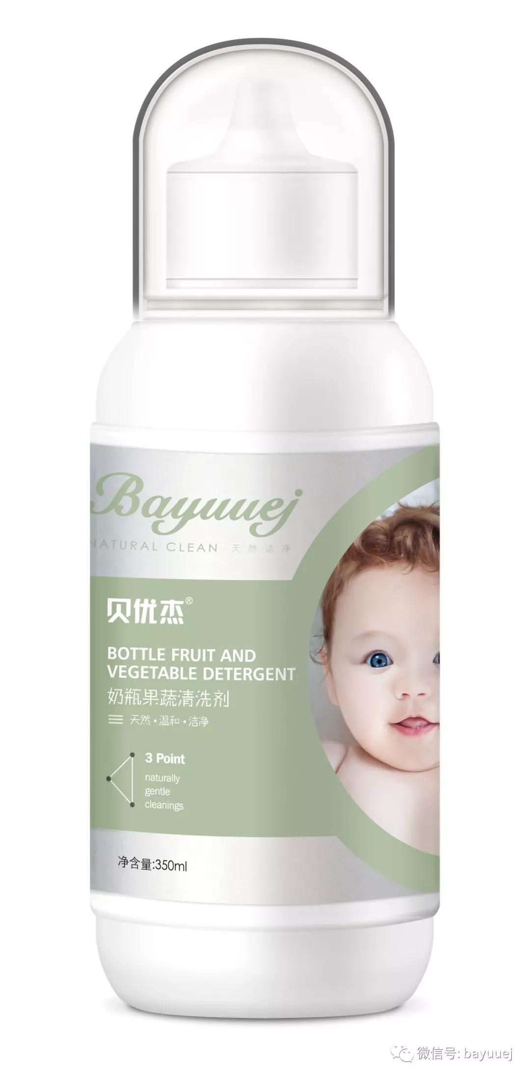 貝優杰奶瓶果蔬清洗濟產品特點1、不含酒精、高效除菌,無刺激,能安心用于奶瓶、奶嘴、小玩具等嬰幼兒入口之物的清洗,有效清洗奶、睡液等嬰兒特有的污垢。 2、輕松去除奶瓶油脂。 3、易水洗,節水環保。