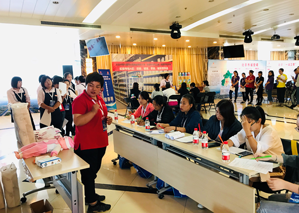 上圖:選手正在完成嬰幼兒洗護產品的推薦的考核
