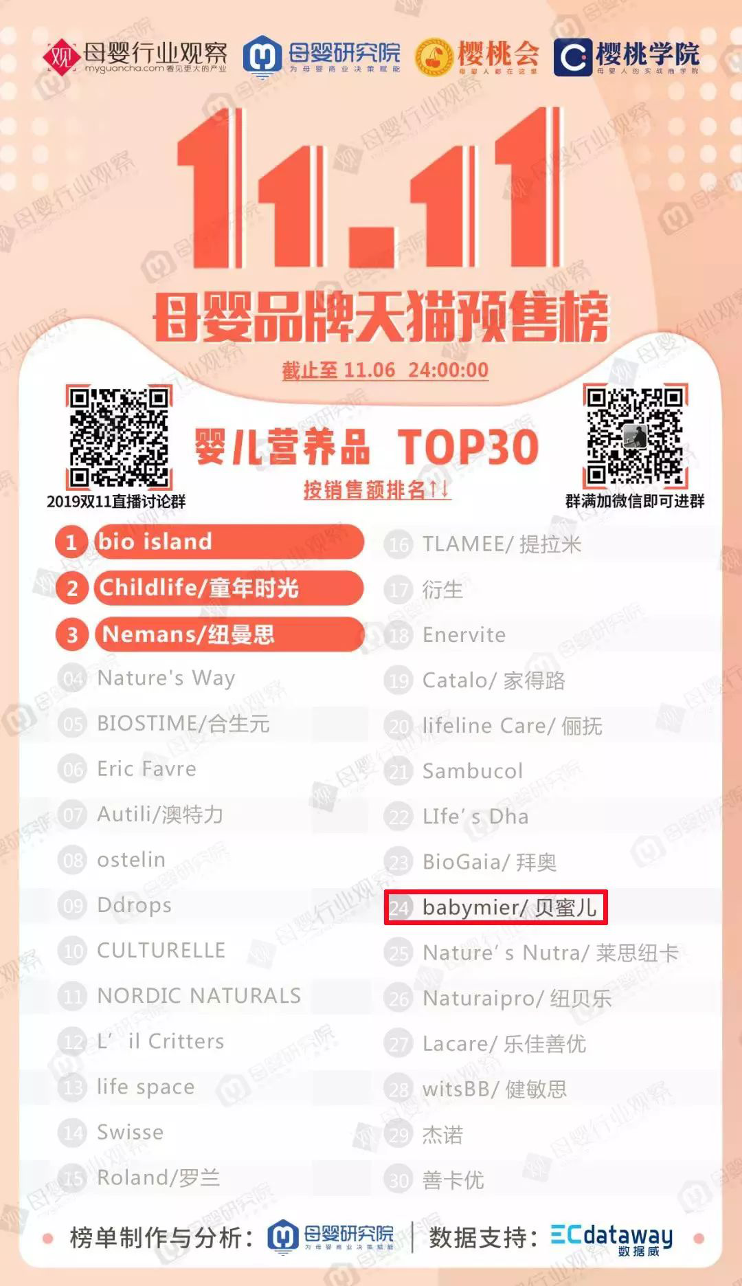 貝蜜兒憑什么榮登“雙11”天貓母嬰品牌預售榜嬰幼兒營養品國產第3、全網TOP30,且與童年時光和合生元等一起進入第一陣營?