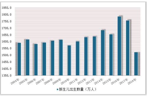 隨國內父母健康意識提升以及二胎政策全面放開,中國嬰兒紙尿褲市場近幾年一直保持快速增長趨勢。2016年嬰兒紙尿褲市場滲透率已提升至55.6%,2016我國0-2歲嬰兒人數近4000萬人,全年出生人口達到1786萬人,較2015年增加131萬人,消費人群規模增加明顯。快速提升的滲透率和龐大的嬰幼兒人口數量推動了嬰兒紙尿褲市場規模的快速增長。 紙尿褲的用戶群體主要有嬰兒與成年人兩大類。其中中國市場主要為嬰兒紙尿褲,中國每年有近2000萬的嬰兒出生,使用尿褲的0歲至2歲的嬰兒達到4000多萬。隨國內父母健康意識提升以及二胎政策全面放開,中國嬰兒紙尿褲市場近幾年一直保持快速增長趨勢。 2004-2018年我國新生兒出生人數統計情況