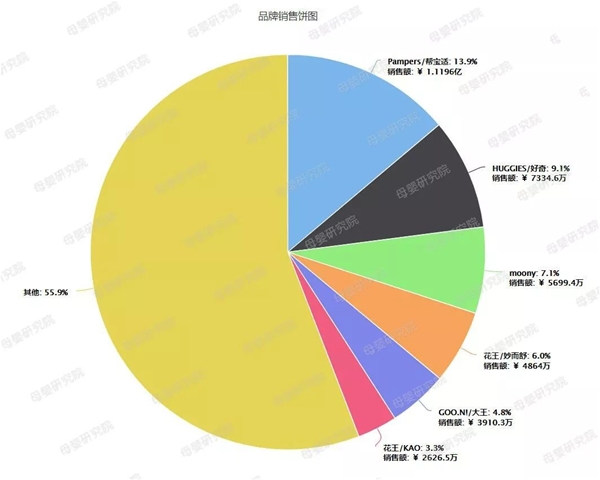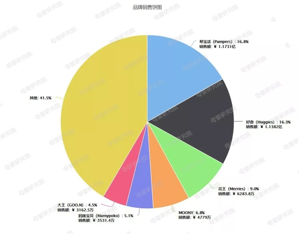 單個品牌業(yè)績來看,在最新的5月份數(shù)據(jù)中,六大外資品牌包攬了平臺市場58.47%份額。其中, ◆幫寶適銷售額1.17億元,平臺市場份額16.78%,排名第一; ◆ 好奇銷售額1.14億元,平臺市場份額16.29%,排名第二; ◆ 花王銷售額0.63億元,平臺市場份額8.99%,排名第三; ◆ Moony銷售額0.48億元,平臺市場份額6.84%,排名第四; ◆ 媽咪寶貝銷售額0.35億元,平臺市場份額5.05%,排名第五; ◆ 大王銷售額0.32億元,平臺市場份額4.52%,排名第六。