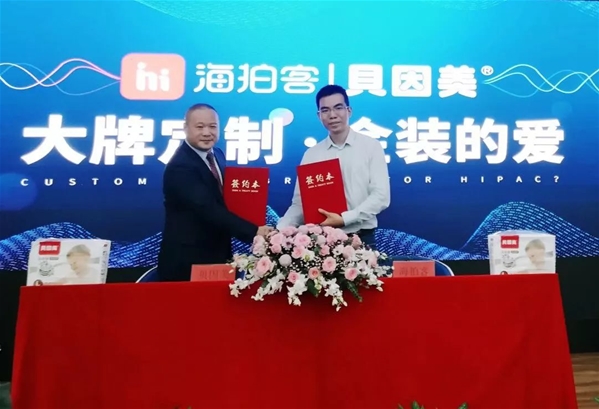 貝因美用品業(yè)務總經(jīng)理徐達新和海拍客CEO趙晨簽署合作協(xié)議 貝因美推出海拍客定制款 金裝的愛給你最好的呵護 早在今年4月,貝因美就已經(jīng)和海拍客達成戰(zhàn)略合作,成為貝因美童享奶粉全國的獨家代理,一起共同賦能線下母嬰市場,聯(lián)手挖掘母嬰市場新藍海。此次戰(zhàn)略合作升級,貝因美聯(lián)合海拍客定制款金裝愛嬰兒紙尿褲的推出,更是表示雙方的合作更加深入,而牽手海拍客,恰恰也能幫助貝因美更快更好打開線下市場。“一直以來,貝因美都在尋找途徑,希望能夠讓貝因美的產(chǎn)品滲透到三到六線母嬰線下市場,遇到了海拍客之后,我們覺得找到了新的機會,所以這次戰(zhàn)略合作升級——海拍客定制款金裝愛嬰兒紙尿褲的推出,相信對于雙方來說都是新的機會,也會給母嬰市場帶來新的機會。” 貝因美用品業(yè)務總經(jīng)理徐達新說道。
