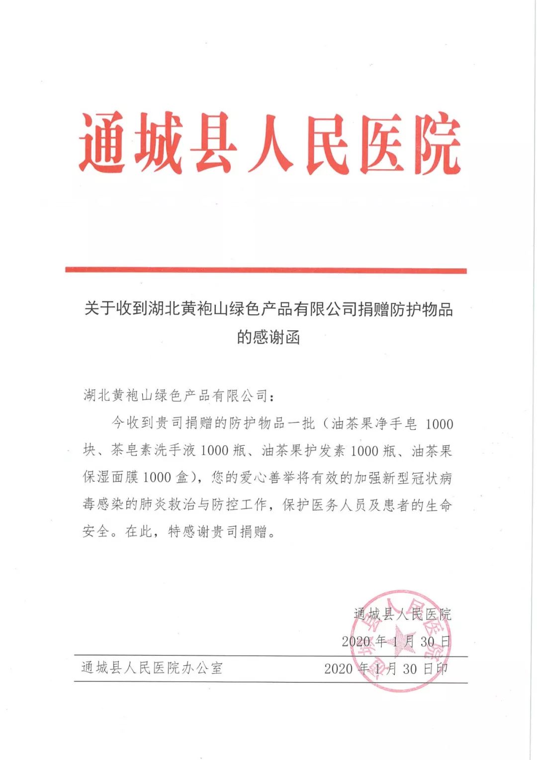 武漢新型冠狀病毒肺炎疫情牽動(dòng)著全國(guó)人民的心。湖北黃袍山綠色產(chǎn)品有限公司作為一家具有高度社會(huì)責(zé)任感的企業(yè),第一時(shí)間參與到來(lái)這場(chǎng)沒(méi)有硝煙的戰(zhàn)役中。組織專(zhuān)人赴通城縣公安局、通城縣防疫指揮部、通城縣人民醫(yī)院捐贈(zèng)醫(yī)用口罩2000個(gè),生活物資1900套,總價(jià)值達(dá)40萬(wàn)元的防疫物品,在做好企業(yè)內(nèi)部防疫工作的同時(shí),支援防疫建設(shè),為戰(zhàn)斗在一線(xiàn)的醫(yī)護(hù)人員、公安干警等工作人員提供基礎(chǔ)的物資保障。
