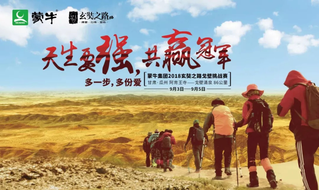 這是繼去年常溫事業部百人挑戰戈壁之后,蒙牛管理團隊的又一次升華之族。本次玄奘之路戈壁挑戰賽以“天生要強 共贏冠軍”為主題,通過繼續融合文化和領導力內涵,明確目標、喚回狼性,促進團隊之間協同共贏、銳意進取,不斷挑戰極限,使蒙牛人深刻理解踐行和傳承“天生要強”的蒙牛精神,歷練一支“天生要強”的狼性團隊,向著“雙千億”戰略目標堅定前行。