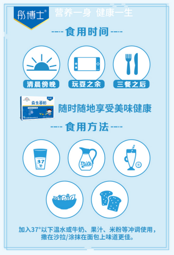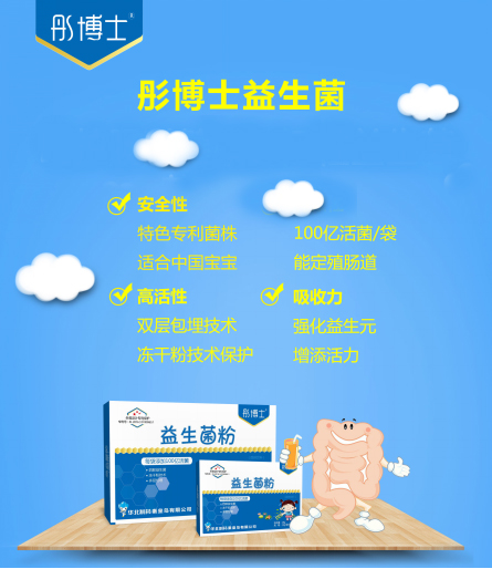 彤博士益生菌粉特色解析: 1、安全性:特色專利菌株,更適合中國寶寶; 2、100億活菌/袋,定殖腸道; 3、高活性:雙層包埋技術(shù)+凍干粉技術(shù)保護; 4、強化益生元,增添活力。