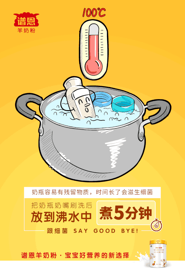 通過簡單地市場走訪發現: ①奶粉沖調水溫要求在40-55℃之間的奶粉品牌相對較多; ②奶粉沖調水溫要求最高不超過70℃; ③也有極少沖調水溫要求在40℃以下的; 由于40℃和70℃分別介于低溫和高溫的臨界,爭議最大。今天小恩帶大家進一步探討,看看采用這兩種沖調水溫是何道理~ 說法一: 70℃更安全,但費時 WHO(世界衛生組織)和聯合國糧農組織(FAO)在2007年出版的《安全制備、貯存和操作嬰兒配方奶粉:指導原則》中建議嬰幼兒配方奶粉的沖調水溫應該為70℃,這樣的溫度可以降低阪崎桿菌及沙門氏菌對寶寶健康的威脅。 WHO/FAO在當時在指導中認為,嬰幼兒配方奶粉不是無菌產品,可能含有引起疾病的病原體,通過正確的配制和操作可以降低致病風險。 這就是用70℃度白開水沖調奶粉的來由。這樣的溫度的確會破壞掉一部分不耐高溫的營養素,如降低蛋白活性,產生一些蛋白質絮狀物沉淀,破環一部分維生素C等。但是這樣的損失只是少部分,用70℃度沖調也是可行的。 阪崎桿菌對提抗力差的嬰幼兒群體威脅極大,所以不足2個月的嬰兒、早產兒/低體重兒及免疫力差的寶寶,可以用70℃的水溫來沖調配方奶粉,只是沖調好后的奶粉需要更長的冷卻時間。 說法二: 40℃營養活性高,沖調更快捷 多數奶粉的沖調建議都低于70℃,普遍為40-55℃之間,甚至更低。例如譜恩綿羊奶粉的建議沖調溫度就為45-55℃。其目的之一就是最大程度保護奶粉中各營養物質的活性,此外,奶粉在這個溫度區間更易溶解,并且沖調之后能夠很快達到寶寶入口的適宜溫度。 盡管阪崎桿菌對寶寶健康威脅很大,為什么這些奶粉的建議沖調溫度遠遠低于70℃呢?其實為了最大限度地保護嬰兒健康,大部分國家都在嬰幼兒配方奶粉標準中嚴格控制阪崎腸桿菌。 國際食品法典委員會(CAC)公布了《嬰幼兒配方奶粉的衛生操作規范》,對即食食品中的單增李斯特菌和嬰兒配方奶粉(適用于6個月以下嬰兒的配方奶粉)中的阪崎腸桿菌進行了限量規定。 2010年,歐盟委員會(EC)發布關于食品微生物標準2073/2005的修訂條例No.365/2010,規定針對6個月以下嬰兒奶粉進行抽樣時,每批次奶粉共抽檢30個樣品,每個樣品不超過10克,其中阪崎腸桿菌的檢出量應為0。 美國食品藥品管理局(FDA)頒布的21CFR106.55中要求針對6個月以下嬰兒奶粉進行抽樣時,每批次奶粉共抽檢30個樣品,每個樣品不超過10克,其中腸桿菌屬(包含阪崎腸桿菌)應為“未檢出”。 我國國家標準《GB 10765-2010 食品安全國家標準 嬰兒配方食品》要求,針對6個月以下的嬰兒配方奶粉進行抽樣時,每批次奶粉共抽檢3個樣品,每個樣品為100克,并且不得檢出阪崎腸桿菌。 也就是說在WHO/FAO提出用70℃水溫沖調奶粉,來降低嬰幼兒感染病原體后,各國還相繼頒發了嚴格的衛生標準,來限制致病菌在配方奶粉中的限量,而且均為零檢出。因此之后對使用高溫沖調奶粉的要求也自然降低。 一般正常銷售的配方奶粉,質量安全都有保障,用40℃左右的水溫沖調也可放心。由于每種奶粉的配方有差異,溶解性各不相同,參考奶粉包裝的建議最好。 譜恩奶粉沖調攻略 1、把奶瓶奶嘴刷洗后放到沸水中煮5分鐘