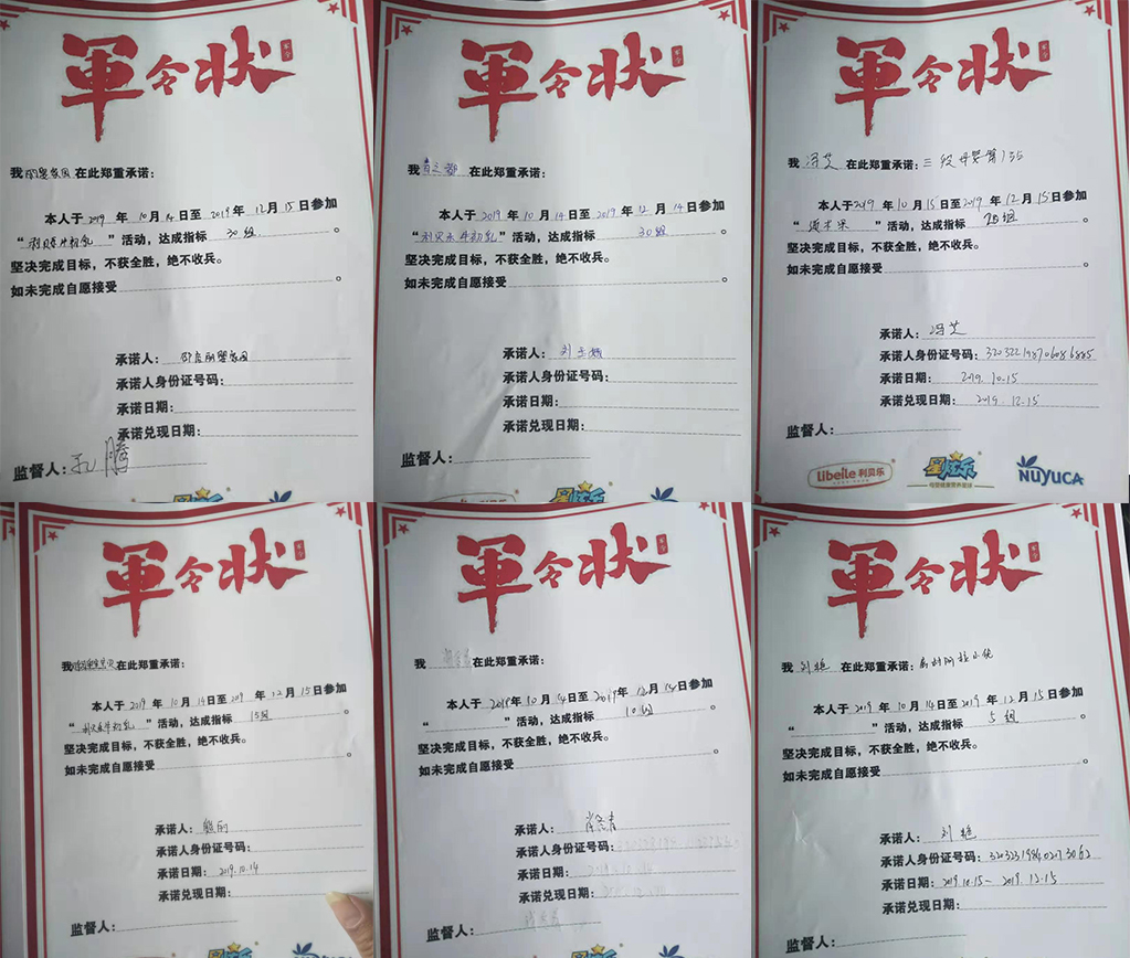 從一開始大家都明白,這不是一個花拳繡腿的培訓,這是一次真刀真槍的演習,最后當然是狹路相逢、爭取榮譽。一份份信誓旦旦的軍令狀就是大家對自己的承諾,也是對今天所有人員的交代,是的,勢必達成,二個月達成800盒利貝樂牛初乳粉實戰(zhàn)動銷。技能強化,動銷為王,為榮譽而戰(zhàn)!
