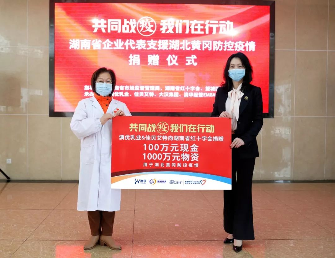 捐贈(zèng)儀式上,澳優(yōu)乳業(yè)聯(lián)合澳優(yōu)U基金攜手佳貝艾特宣布再次向湖南省紅十字會(huì)捐贈(zèng)100萬(wàn)元現(xiàn)金以及1000萬(wàn)元的物資。據(jù)了解,此次捐贈(zèng)的現(xiàn)金及物資將全部定向用于湖北黃岡,其中100萬(wàn)元現(xiàn)金將用于醫(yī)務(wù)人員購(gòu)買(mǎi)疫情防控用品,而1000萬(wàn)元的佳貝艾特羊奶粉則主要用于為醫(yī)務(wù)人員、戰(zhàn)斗在一線的防疫工作者、確診與疑似人員以及受困家庭提供營(yíng)養(yǎng)支持。