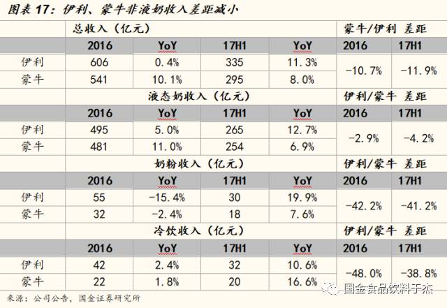 2016 年下半年由于出售庫存大包粉虧損、計提雅士利商譽減值、以及現代牧業(yè)虧損,導致蒙牛賬面虧損 7.51 億,但蒙牛的核心液態(tài)奶業(yè)務依然保持著強勢增長,今年上半年蒙牛利潤轉正,利潤率達 3.8% 。