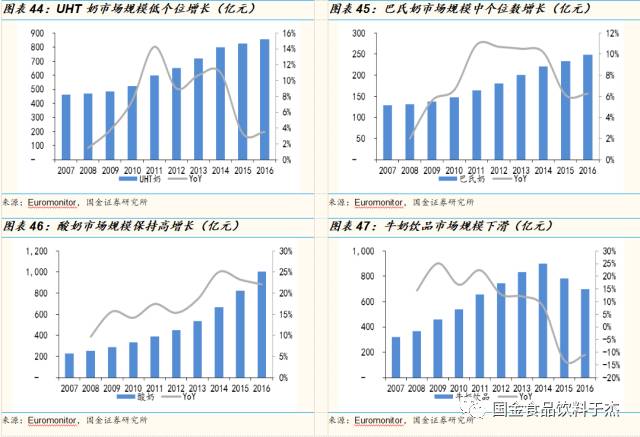 我們認為隨著行業(yè)內惡性競爭在 2016 年下半年逐步好轉,各大企業(yè)并沒有新的大單品推出之際,廣告宣傳費用有望較 2016 年有所下滑。但考慮到整體乳制品行業(yè)已經進入一個較為平穩(wěn)的發(fā)展時期,我們認為正常的營銷費用如地推費、貨架費、促銷返點費用下降幅度有限,更多調節(jié)在于軟廣的投放費用。