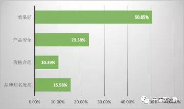 簡析:由以上調查數據可知,與市區母嬰店一樣,鄉鎮店的數據同樣表明,在秋冬季節市場對嬰幼兒護膚品的需求較大。這說明嬰幼兒護膚品行業季節性很強,受氣候的影響較大,存在著周期性的淡旺季。母嬰店在經營中,要把握這種規律,調整自己的經營策略,秋冬季時可以適度擴大商品庫存量,春夏季時則酌情減少。 7、貴門店消費者在選擇嬰幼兒護膚品時最看重什么?(市區店)