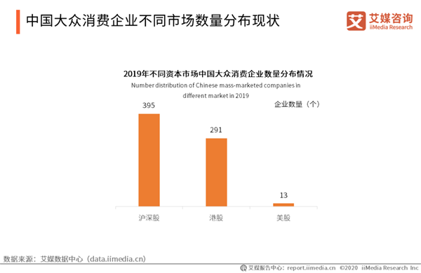 中國大眾消費企業不同市場數量分布現狀 數據顯示,中國大眾消費企業偏好在滬深股上市,截至2019年12月31日,滬深股市場的大眾消費企業達395家。艾媒咨詢分析師認為,目前滬深股市場仍然是大眾消費企業主要上市渠道,但滬深股市場上市資質要求更為嚴格,未來選擇在境外資本市場上市的企業有望繼續增加。