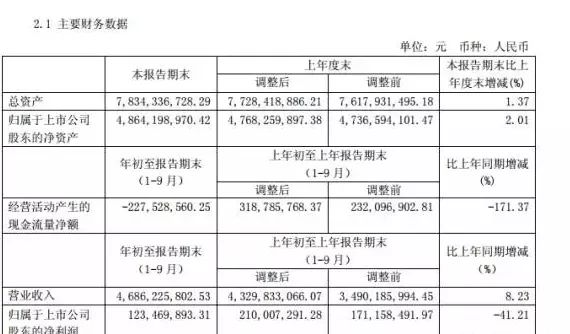 財(cái)報(bào)顯示,1-9月,三元經(jīng)營(yíng)活動(dòng)產(chǎn)生的現(xiàn)金流為負(fù)2.28億元,同比下降171.37%。