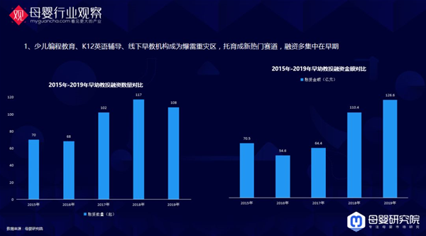 具體到細分領域:2019年很多早幼教機構跑路,在為前些年的泡沫買單。少兒編程教育、K12英語輔導、線下早教機構成為爆雷重災區(qū);托育成新熱門賽道,融資多集中在早期。