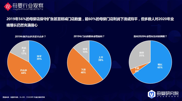 這一年,線下的渠道在加速關店還是開店? 母嬰研究院近期的調(diào)研報告顯示,2019年56%的母嬰店保守擴張甚至精減門店數(shù)量,超60%的母嬰門店利潤下滑或持平,但多數(shù)人對2020年業(yè)績增長仍然充滿信心。
