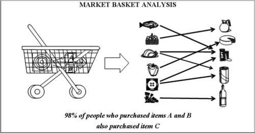 Source:Medium 推薦系統會根據消費者的選擇調整推薦內容。大量的數據經過推薦系統的清理和篩選后可以為商家提供寶貴的insight。我們一般所說的推薦系統算法,分協同過濾和基于內容過濾這兩種。前者是基于顧客過去一系列的行為,而后者是基于一系列產品的特性。除此之外,還有其他各種諸如人口學、偏好、需求、歷史消費記錄等等數據, 也會被學習歷史數據的算法預處理。 推薦系統會算出一個相似度指數,用以描述消費者的偏好,并根據這個指數來優先推薦每個消費者(預計)最喜愛的商品或者服務。根據線上用戶畫像的分析,推薦系統可以推薦up-sell(同類別更高檔的)產品或者cross-sell(不同類別的互補產品)給用戶。 購物籃分析Market basket analysis 購物籃分析是一種在零售業經久不衰又十分有效的傳統分析方法。這種分析方法著眼于消費者購物籃里的商品組成并結合購買記錄從而找出商品間的關聯,外加線上收集的消費者對于產品的偏好,商家可以預測顧客接下來可能購買什么產品并因此調整自己的貨架展示以及定價策略。