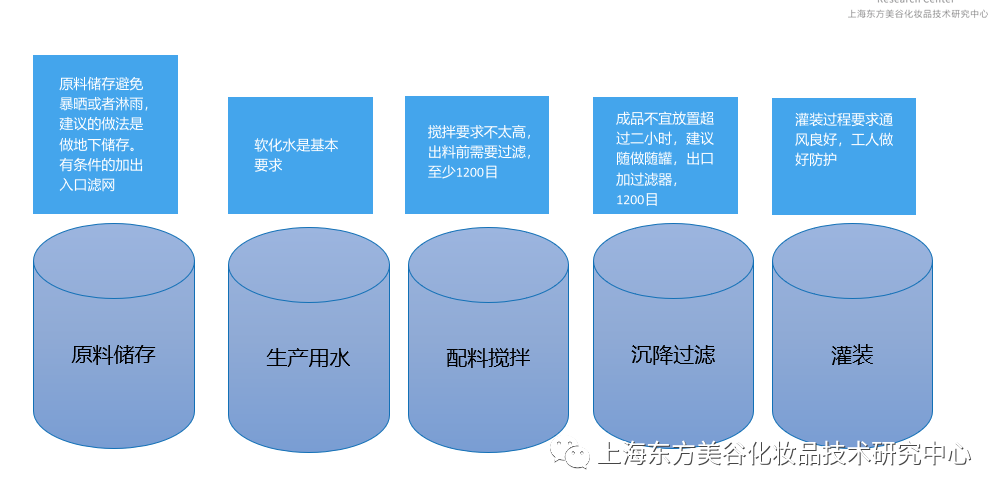 3、委托生產企業注意事項:營業執照經營范圍、代加工企業資質、上市產品提前準備時間(4-6個月) 4、產品宣稱應有理化和毒理試驗檢驗依據。 二、裝備工藝 1、獨立的廠房: 根據所申請的許可證的產品劑型不同需要建立不同廠房,比如:消毒粉需要防爆車間;酒精抑菌啫喱需要防爆凈化車間。生產車間凈化各地要求有些不一,上海東方美谷化妝品技術研究中心依上海地區為例:用于粘膜的產品10萬級、用于皮膚的產品30萬級、用于物體表面消毒一般潔凈廠房即可。