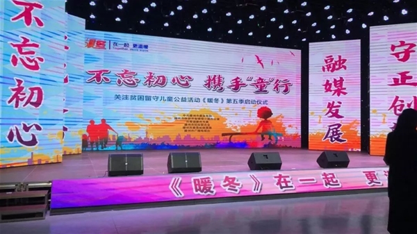 2019年11月23日,由滕州市電視臺主辦“不忘初心 攜手童行”關注貧困留守兒童公益活動《暖冬》第五季啟動儀式在滕州電視臺匯演中心舉辦。