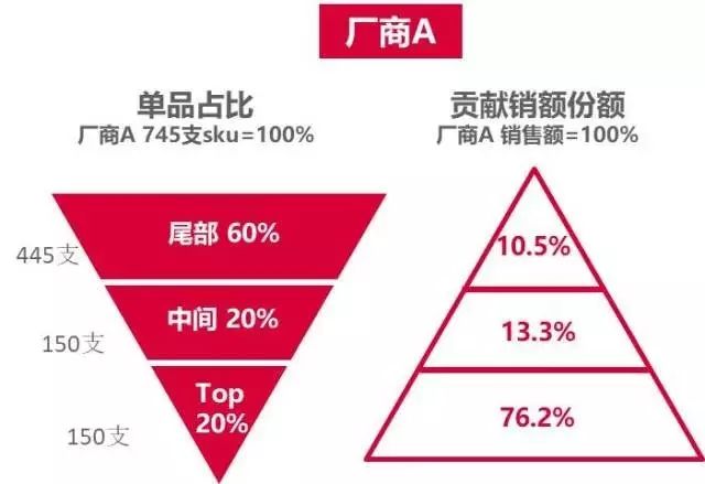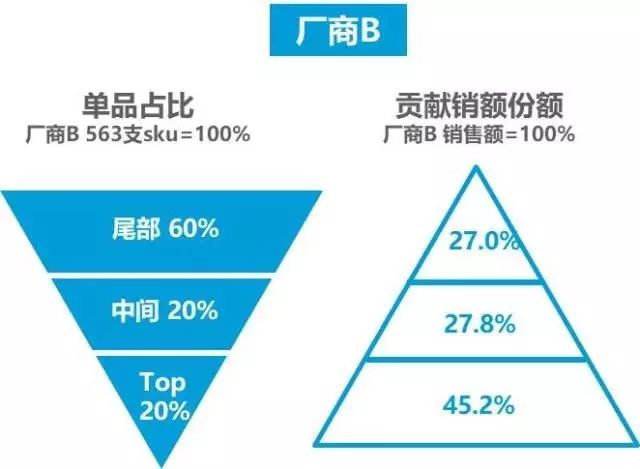 你是否也有這樣的疑問? 產(chǎn)品線如何組合可以實(shí)現(xiàn)銷售增長(zhǎng)最優(yōu)化/利潤(rùn)最優(yōu)化/競(jìng)爭(zhēng)最優(yōu)化/可持續(xù)發(fā)展? 全國(guó)產(chǎn)品線策略與區(qū)域產(chǎn)品線策略如何相得益彰? 競(jìng)爭(zhēng)對(duì)手調(diào)整了產(chǎn)品線,我是否需要調(diào)整? 經(jīng)營(yíng)環(huán)境變化劇烈而迅速,我的產(chǎn)品線管理工作調(diào)整及優(yōu)化方向在哪里? 那我們先來(lái)看一下優(yōu)秀品牌商的實(shí)踐,我們常會(huì)發(fā)現(xiàn)產(chǎn)品組合管理做的較為優(yōu)秀的廠商在評(píng)估過程中體現(xiàn)出如下優(yōu)勢(shì): 既定營(yíng)銷目標(biāo)達(dá)成狀況良好 “二八”定律體現(xiàn)得更明顯 產(chǎn)品線的可延展性更強(qiáng) 新舊產(chǎn)品資源平衡有效 產(chǎn)品線可實(shí)現(xiàn)動(dòng)態(tài)優(yōu)化 “二八”定律體現(xiàn)更明顯 使用“二八”定律,使得廠商在三個(gè)方面方面容易作決策,如核心資源的配置,黃金單品的打造以及子品牌/SKU的更新迭代等等。 舉個(gè)例子: 廠商A 銷量排名前20%的單品貢獻(xiàn)了76%的銷售份額,相較而言,廠商B排名前20%的單品僅貢獻(xiàn)了45.2%的銷售份額。您認(rèn)為那個(gè)產(chǎn)品組合效率高? *很明顯廠商A的產(chǎn)品組合效率優(yōu)于廠商B。