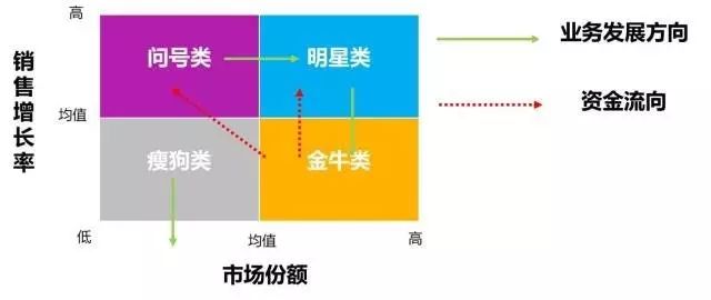 新舊產(chǎn)品互相蠶食方面:設(shè)計(jì)不到位的情況下經(jīng)常出現(xiàn)本品的新舊產(chǎn)品間相互蠶食,可能對(duì)產(chǎn)品的銷量受到影響 成功要素:進(jìn)行產(chǎn)品屬性的差異化設(shè)計(jì)及價(jià)格帶分布的合理配置 在新舊產(chǎn)品的平衡與規(guī)劃過程中,始終要注意以消費(fèi)者為核心,減少多余的選擇,提供具有價(jià)值的產(chǎn)品,簡(jiǎn)化選擇有助于購(gòu)物者選擇。 產(chǎn)品線可實(shí)現(xiàn)動(dòng)態(tài)優(yōu)化 在產(chǎn)品組合的動(dòng)態(tài)優(yōu)化上可以采用如下兩個(gè)模型作為輔助工具: BCG矩陣,分別將銷售增長(zhǎng)率和市場(chǎng)份額作為矩陣的縱軸和橫軸進(jìn)行交叉對(duì)比,從而判斷業(yè)務(wù)發(fā)展的方向和企業(yè)資金的分配決策。這當(dāng)中需要注意的是,對(duì)各產(chǎn)品線要有相對(duì)準(zhǔn)確的預(yù)期發(fā)展軌跡,對(duì)于金牛類和明星類產(chǎn)品線需要明確的業(yè)務(wù)預(yù)測(cè):
