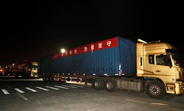 (日夜兼程,護送奶粉) 決定捐贈后,惠氏立即整合物流系統,精密細算每一份運力資源、運輸配置的優化調配,產品、物流、倉儲、車隊等關聯部門加速反應,聯動作業。為在各地交通嚴格管控的情況下,緊急聯系各地政府部門,保證物流暢通。工作人員與時間賽跑,不顧寒潮惡劣天氣,在零下的低溫條件下加班加點、火速完成產品出貨和物資裝車工作。在可調動運力資源有限的重壓下,配送團隊全員集合完畢。運輸車隊星夜兼程,在一天不到的時間就將物資運送至湖北荊門、孝感、黃石、鄂州、恩施、咸寧等6個城市,順利完成全部交接工作,保障湖北地區寶寶在疫情期間口糧不間斷。