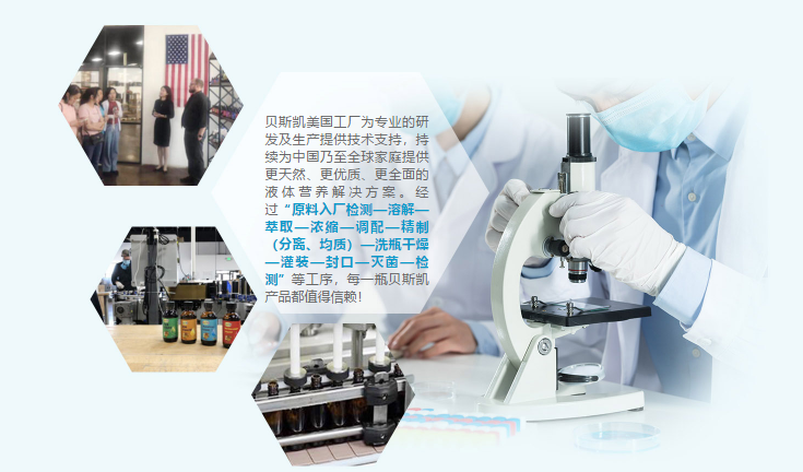 2、生產優質 貝斯凱/Best kid的生產基地瑪特森工廠(Matsun Nutrition),成立于1991年,已有28年液體營養品的生產經驗。目前超過30種的液體維生素、礦物質和中草藥配方,不僅在美國全境銷售,同時還銷往歐洲、美洲、亞洲等幾大國家,并且在I-Herb,Vitacost等國際專業的保健品網站同步全球銷售。 據悉,每一瓶貝斯凱/Best kid產品都要經過“原料入廠檢測—溶解—萃取—濃縮—調配—精制(分離、均質)—洗瓶干燥—灌裝—封口—滅菌—檢測”等工序,值得信賴!