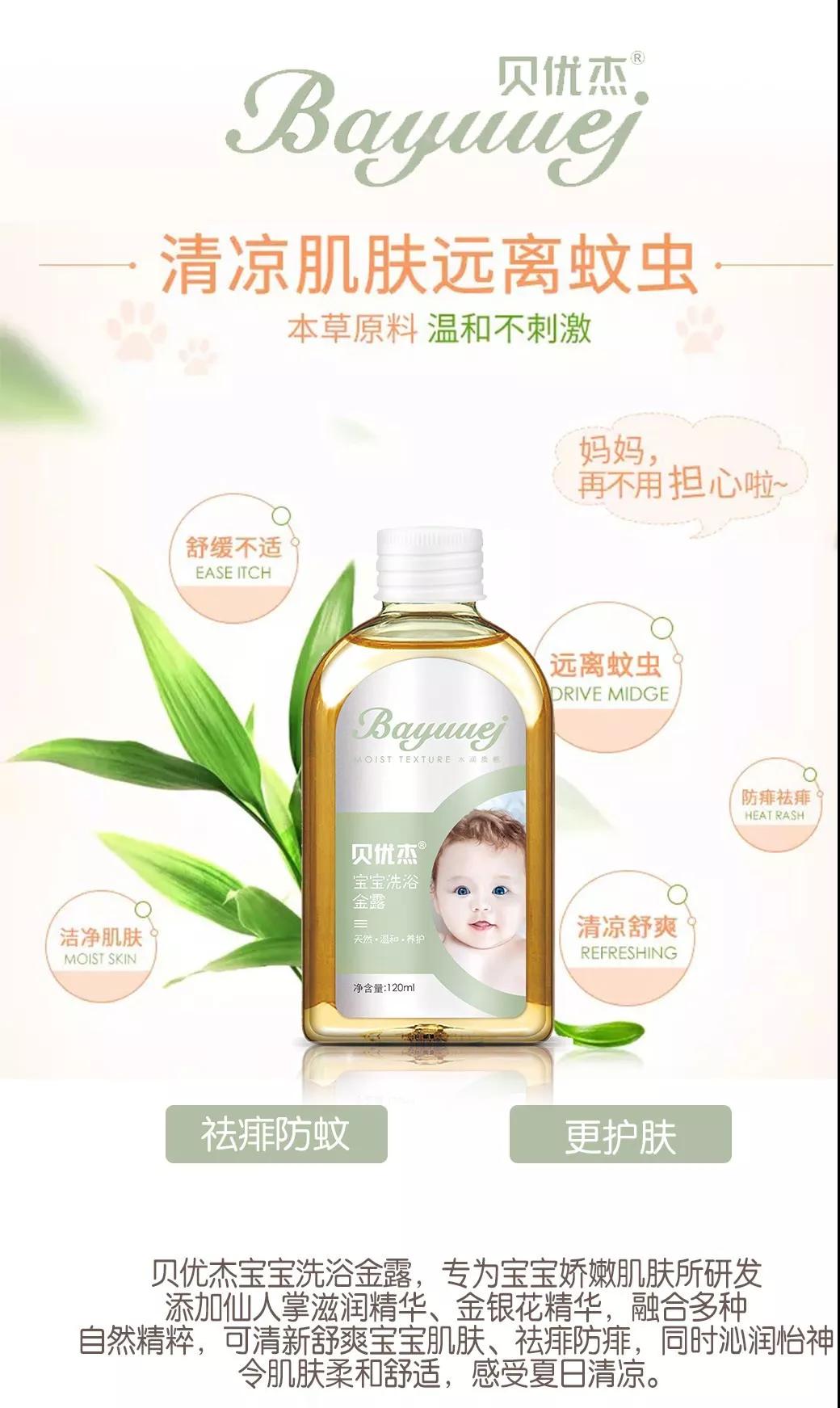 泡澡金露會有天然植物精油的芳香氣味,自然而然驅散蚊蟲。泡完澡的寶寶仿佛自帶“金鐘罩鐵布衫”,再加上臥室里蚊香液的加持。寶寶就能舒爽安眠一整夜。