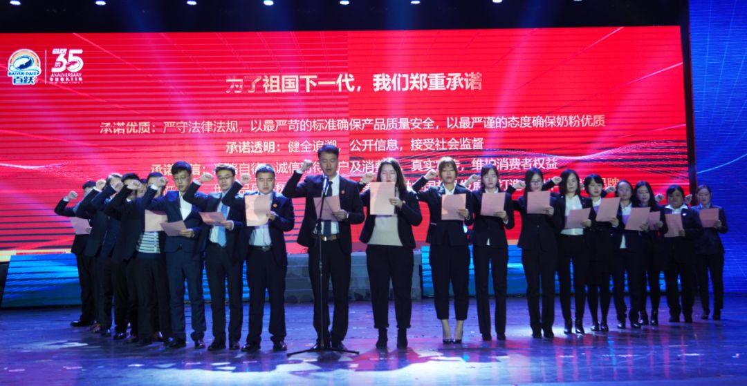 全體百躍人共同宣誓:維護(hù)消費(fèi)者權(quán)益,堅(jiān)持百躍品質(zhì),促進(jìn)羊乳行業(yè)發(fā)展!御寶緊跟集團(tuán)步伐,不忘初心,砥礪前行,將品質(zhì)進(jìn)行到底!