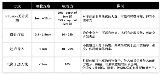 昨天,一個閨蜜和我說:護膚很多年了,什么貴的護膚品都用過了,在護膚品上花費的錢不在少數,但皮膚一直很差。這是沒有用對護膚品嗎? 你的護膚品,為什么沒有效果? 很多人都犯了這樣一個錯:不遺余力地把時間和錢花在護膚品上,卻從沒考慮過皮膚吸收的問題。再貴的護膚品,沒有被皮膚吸收,也是浪費。如何讓這些營養成分滲透到皮膚才是關鍵! 傳統護膚是“涂抹—吸收”的模式,有效成分先經過角質層,通過它轉運代謝,再到達表皮層,甚至“皮膚深層”(表皮層較深的位置,例如基底層)。 實際上,護膚品根本不可能進入基底層和真皮層,國家已經禁止任何護膚品商家宣傳進入基底層真皮層。因為皮膚天生的特質是對外疏水性對內親水性。通俗的講皮膚自身特性就是抵御外面的水分進入肌膚,同時阻止內部水分大量揮發。 而現在流行的無針美塑療法,可以打破這種障礙,讓營養活性成分達到表皮和真皮之間的“中胚層”。