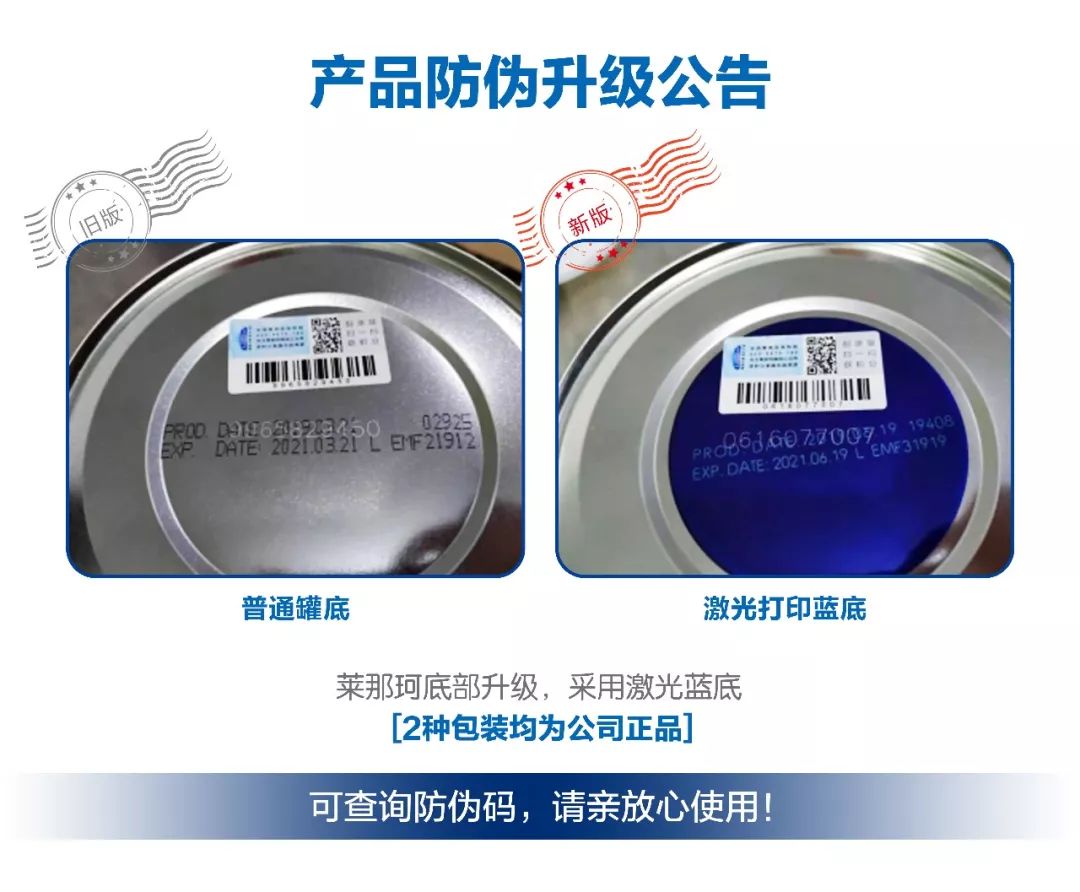 奶粉是寶寶生長發(fā)育過程中重要的營養(yǎng)來源,眾多的寶爸寶媽都十分注重奶粉的質量安全,如何實現(xiàn)奶粉的品質質量管控,保障奶粉的質量安全,避免假冒偽劣奶粉的侵害,提高寶爸寶媽的購買信心,萊那珂為了更好的完善追溯系統(tǒng),2019年6月批次起,底部防偽再次升級,透過多重的防偽工藝,層層保護產品真?zhèn)巍?/p>