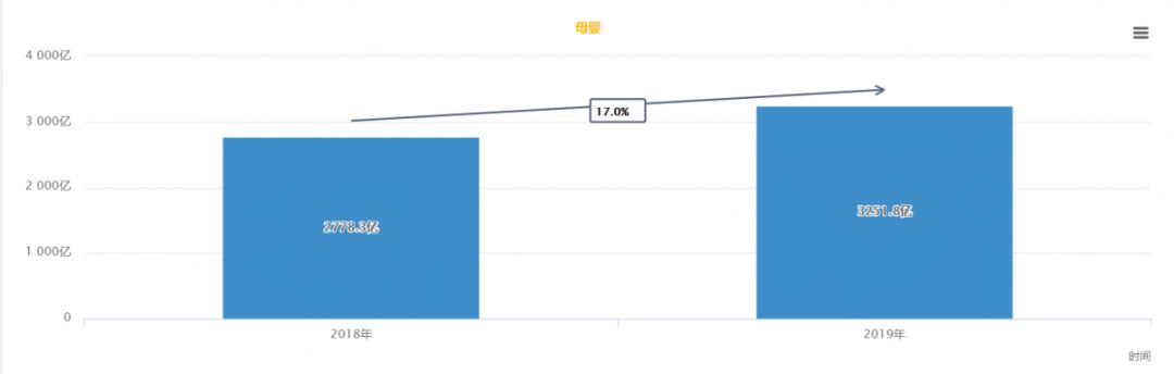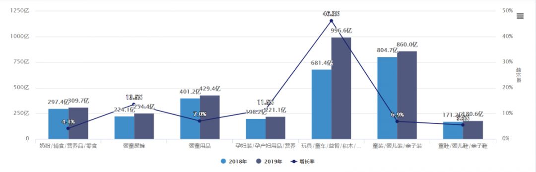 嬰兒食品增速下滑為個(gè)位數(shù) 從數(shù)據(jù)上看,幾大類目都得到了不同程度的增長(zhǎng),其中嬰兒食品(奶粉/輔食/營(yíng)養(yǎng)品/零食)增速下滑明顯,增速僅為4.1%,成為增速最低的類目,熱度持續(xù)降低。