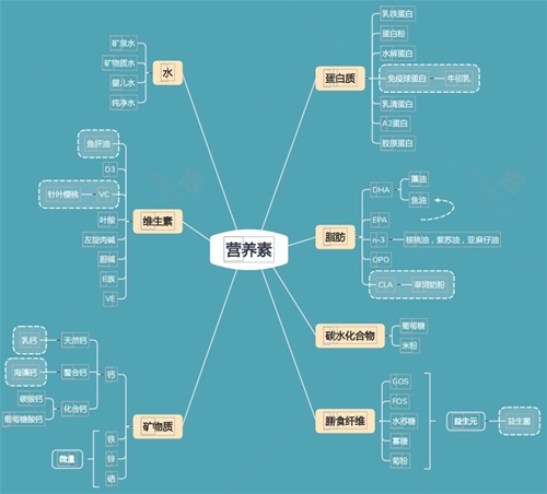 人體需要的營養(yǎng)素包括7大類,同時由這些營養(yǎng)素派生出來不同的產(chǎn)品。 首先是蛋白質。蛋白質類的產(chǎn)品包含:1、乳鐵蛋白,現(xiàn)在很火的一個品類;2、蛋白粉;3、免疫球蛋白,免疫球蛋白IgG的含量是檢測牛初乳最主要的一個指標;4、水解蛋白,很多是用于在奶粉里面,水解蛋白就把大的蛋白分子把它切成段;5、乳清蛋白,市面上有一些蛋白粉是用乳清蛋白來做的,特別是成年人大保健用的更多;6、A2蛋白,A2是一種特別的酪蛋白結構,A2奶粉是現(xiàn)在比較火的一款奶粉。7、膠原蛋白,女性經(jīng)常吃的,也屬于蛋白質類的產(chǎn)品。 在嬰童店最多的就是乳鐵蛋白調制乳粉、蛋白粉、水解蛋白奶粉、牛初乳、以A2酪蛋白為原料的A2奶粉,還有膠原蛋白的各種東西。 蛋白質是人體所需要的一個非常重要的物質,且對孩子的智力發(fā)育影響很大,最早的一項研究就說是小孩子如果蛋白質補充充足的話,學習能力要比蛋白質補充不充足的孩子好很多,如果是喂米糊長大的孩子,未來上學的時候會有一點麻煩。 第二是脂肪。包含的產(chǎn)品:1、比較熟悉的DHA,我們稱之為二十二碳六烯酸,就是一些脂肪酸的結構。DHA主要是用于腦細胞膜,更重要的作用,是在大保健里面是對心血管有好處,可以降血脂。2、EPA,也是一些脂肪酸的結構。3、ω-3,核桃油是DHA的前體,它會轉化為DHA。 現(xiàn)在有一個“生酮飲食”,在大保健里面就是斷糖的飲食指導,就是以蛋白質和脂肪為主。以前我們總以為全脂肪是不好的,其實現(xiàn)在發(fā)現(xiàn)很多短鏈脂肪是對人體非常好,尤其是對大腦。 4、OPO,大家會也是蠻熟悉的,這是一個脂肪酸結構,據(jù)說是最像母乳的一個脂肪酸結構。 5、CLA(共軛亞油酸),可能今年或者是明年,有一個概念叫草飼奶粉,會開始興起。純粹用草飼養(yǎng)的牛,它的奶里面的CLA含量是遠遠高過普通飼料牛的。 這個有什么好處?他首先是在大保健里面使用,會發(fā)現(xiàn)草飼牛的全脂奶粉其實是更有營養(yǎng)。這種奶粉是促進脂肪的轉化,也就是說可以保持身材。那么對于孩子來說,他是能促進生長發(fā)育和大腦發(fā)育。所以我想是在不久的將來,草飼奶粉會更多的在母嬰行業(yè)出現(xiàn)。 第三是碳水化合物,我們每天吃的米飯、饅頭、糖等等這些就叫碳水化合物。碳水化合物在嬰童店會經(jīng)常看到的,最早的時候有葡萄糖,還有米粉。為什么人們特別是嬰幼兒需要大量的碳水化合物?碳水化合物產(chǎn)生的能量是直接供給大腦和直接進入血液,然后進行有氧反應,輸送氧氣到大腦里面。如果孩子出現(xiàn)低血糖,其實是影響他的腦部發(fā)育的,所以及時的補充碳水化合物也是非常有必要的。 第四是膳食纖維,這是從碳水化合物派生出的另外一個派系。膳食纖維其實有很多,包括:1、GOS,是低聚半乳糖;2、FOS,是低聚果糖,這種兩元素很多奶粉里面都會有添加。3、水蘇糖,這是用大豆制品做的,不太建議用于嬰兒的食品,因為大豆制品會引起嬰兒產(chǎn)生一些氣體。4、寡糖;5、菊粉,這兩種元素一般不建議用于嬰幼兒的,菊粉更多的給中老年人,或者13歲以上的孩子。 所有的這些膳食纖維我們還可以把它取名叫益生元,也就是益生菌的食物。 第五是水。水是生命里面非常重要的物質,人體離不開水,以水派生出來的產(chǎn)品有礦泉水、礦物質水、嬰兒水、純凈水等。 第六是維生素。產(chǎn)品包括:魚肝油、D3、VC、葉酸、左旋肉堿、膽堿、B族喝VE。可以說現(xiàn)代營養(yǎng)學就是從維生素開始的,全世界第一款營養(yǎng)品就是維生素a。維生素是目前研究最廣泛的一種營養(yǎng)品。人體的維生素需求量非常少,但是又不能缺少。母嬰店里面經(jīng)常見到的魚肝油,補充的是維生素a和維生素d,也叫維生素AD。最主要的作用是補充維生素d,但目前來說維生素a也同樣重要。 現(xiàn)在新冠是從我們的粘膜感染,粘膜里面有一種抗體叫IgA粘膜抗體。維生素A是促進粘膜分泌粘膜抗體IgA的一個非常重要的物質。所以現(xiàn)在魚肝油又有新的賣點了。對于母乳期的嬰兒,世界衛(wèi)生組織主張連水都不要喝的,因為母乳里面有足夠的水,但是唯一有一樣東西是必須要補充的,就是魚肝油。 寶寶店里面可能更多的是鱈魚肝油、鯊魚肝油,這種天然的魚肝油價格要比藥房要貴很多。為什么呢?因為天然的魚肝油含有維生素d3,專門補充d3。像冰島這樣的特別冷的國家,他們把魚肝油作為一個日常的營養(yǎng)品來吃的,不管是孩子還是大人都會去吃,他們的身體會比我們強壯的很多。 VC藥房里面很便宜,還有一種VC叫針葉櫻桃,就是直接從針葉櫻桃里面提取的天然VC。 葉酸,這是孕婦要吃的,避免胎兒畸形。左旋肉堿,大家會在減肥產(chǎn)品里面看到,屬于B族維生素。此外嬰兒奶粉里面也添加左旋肉堿,它能促進脂肪轉化為能量。 膽堿和B族,B族就是一個復合維生素的概念。維生素e,核桃油里面就含有VE。基本上是膠囊或者滴劑里面都會有添加維生素e,因為它具有抗氧化的作用。顧名思義,維生素e就是一種美容的產(chǎn)品。 最后一個是礦物質。我們把它分成兩塊,鈣屬于常量元素,鐵、鋅、硒這些屬于微量。 補鈣是一件非常重要的事情。中國人的正常飲食,鈣的攝入量是遠遠不夠的,所以到老了以后,經(jīng)常會有骨質疏松、關節(jié)炎等等這些問題出現(xià